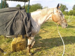 Erst im Stand, dann in Bewegung. Die Plane raschelt und rutscht ihr immer wieder vom Hintern runter, aber Suri nimmt das völlig gelassen hin. Als hätten wir nie etwas anderes gemacht trägt sie die Plane locker über den Platz. Ein schöner Abschluss für diesen Trainingstag.