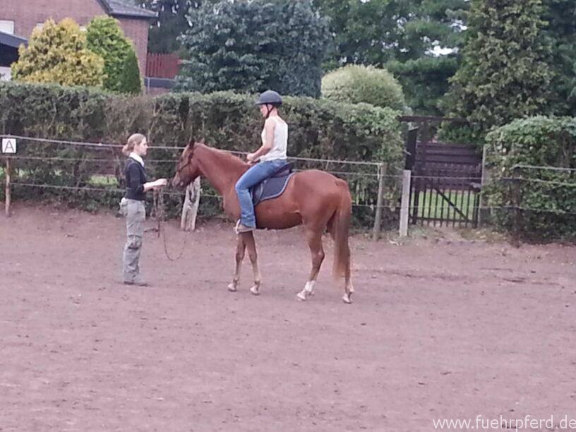 Seine Besitzerin saß auch schon auf ihm. Wir haben ihn lediglich stehen lassen und sie hat ein paar Übungen zum Aufsteigen gemacht. Er hat alles ganz brav mitgemacht – er kennt das ja auch schon. Trotzt seiner Vorgeschichte scheint er nach unserer Vorbereitung kein Problem mit dem Reiter zu haben! Ein toller Erfolg! Ramón ist kein einfaches Pferd, aber insgesamt ein ganz lieber, intelligenter Kerl. Er möchte gern mitarbeiten und will viel lernen. Meine Einschätzung: er wird mal ein ganz toller Freizeitpartner, der mit seiner Besitzerin noch viel lernen und sich entwickeln kann!